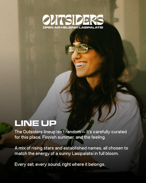 On top of the international names, Finnish talents Heikki L & Markson will take the stage with a special acoustic live set, created exclusively for Outsiders. Also joining the lineup is Ketter, a rising name in the scene, bringing the best house sounds of the moment—perfectly fitting for the unique atmosphere of Lasipalatsi!